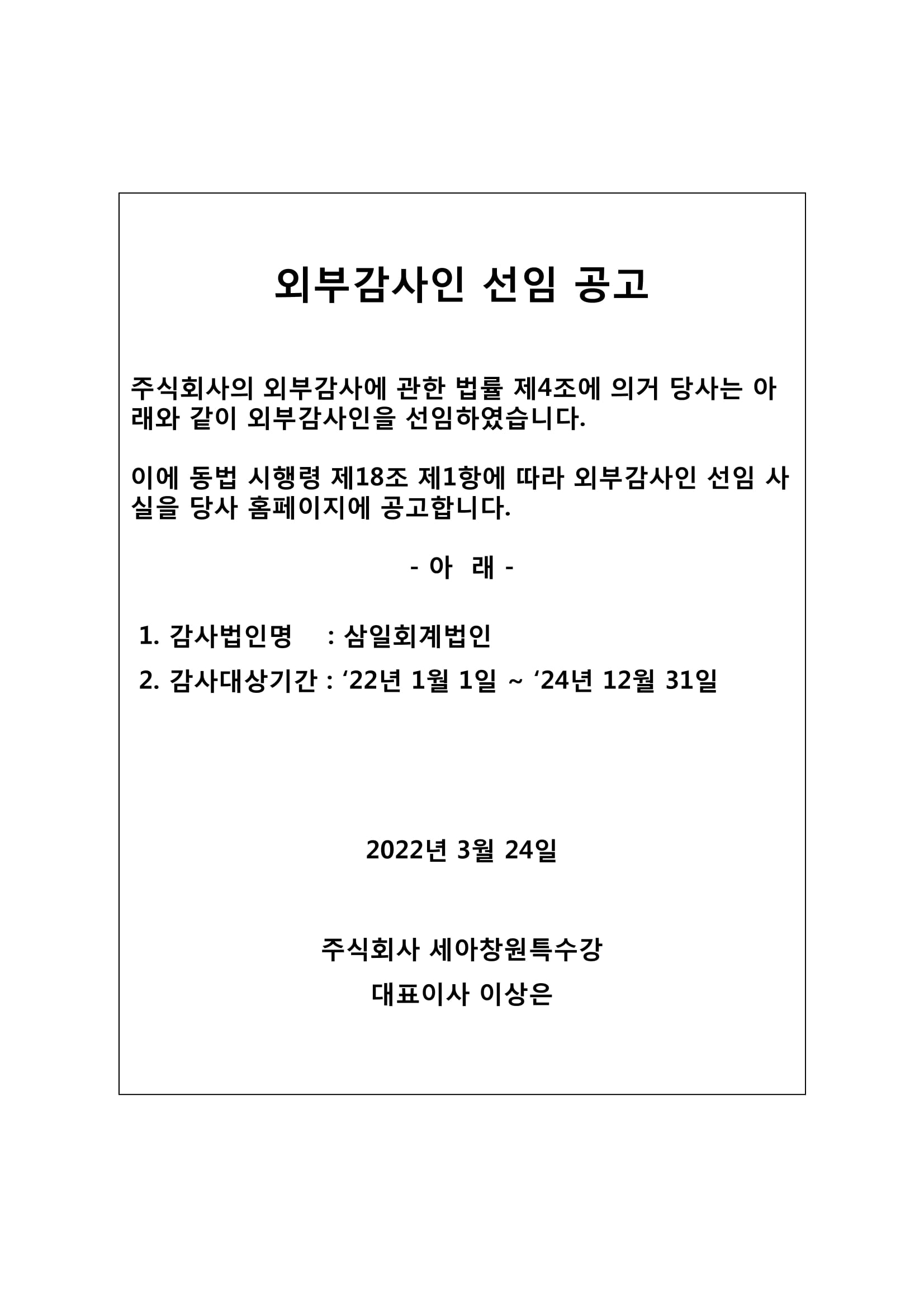 '세아창원특수강'은 (이하 '회사'는)고객님의 개인정보를 중요시하며, "정보통신망 이용촉진 및 정보보호"에 관한 법률을 준수하고 있습니다. 회사는 개인정보취급방침을 통하여 고객님께서 제공하시는 개인정보가 어떠한 용도와 방식으로 이용되고 있으며, 개인정보보호를 위해 어떠한 조치가 취해지고 있는지 알려드립니다. 회사는 개인정보취급방침을 개정하는 경우 웹사이트 공지사항(또는 개별공지)을 통하여 공지할 것입니다. 본 방침은 : 2023 년 02 월 01 일부터 시행됩니다.