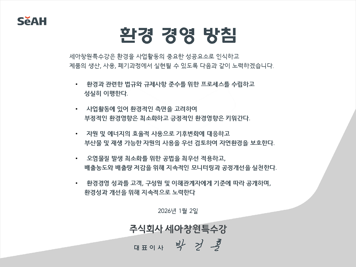 세아창원특수강은 선제적인 탄소 및 오염 저감활동과 환경관리시스템 고도화로